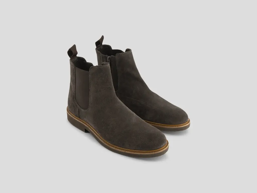 Stijlvolle grijsbruine chelsea boots met een bovenwerk van een zachte, mooie kwaliteit suede voorzien van een elastische sluiting en ritssluiting aan de binnenkant. De chelsea boot is een tijdloos model en past perfect voor het creeren van een smart casual look.
